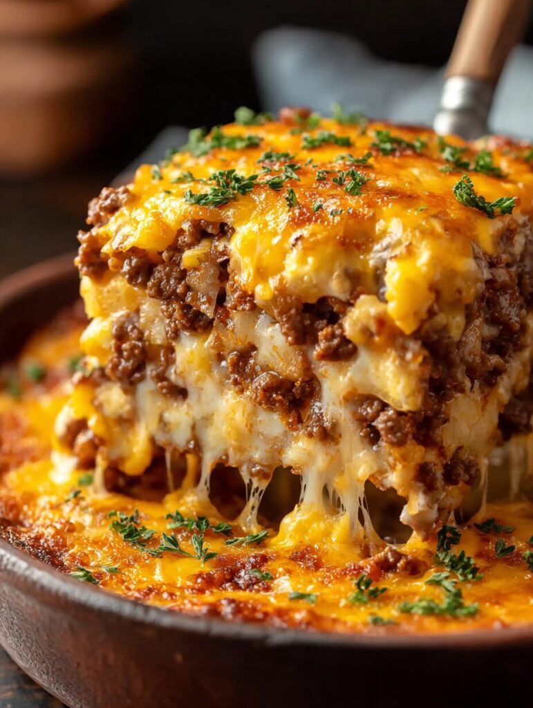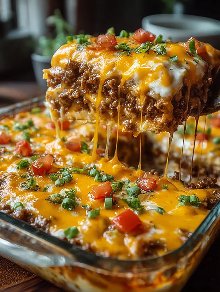 Hearty and satisfying, Cattle Drive Casserole is loaded with ground beef, creamy layers, and cheesy goodness—perfect for weeknight dinners or potlucks!