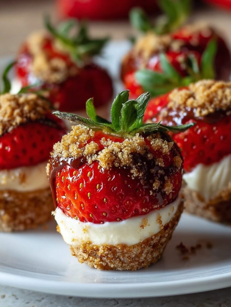 - Sprinkle some crushed graham crackers on top of each stuffed strawberry for that classic cheesecake crunch, if desired.