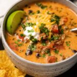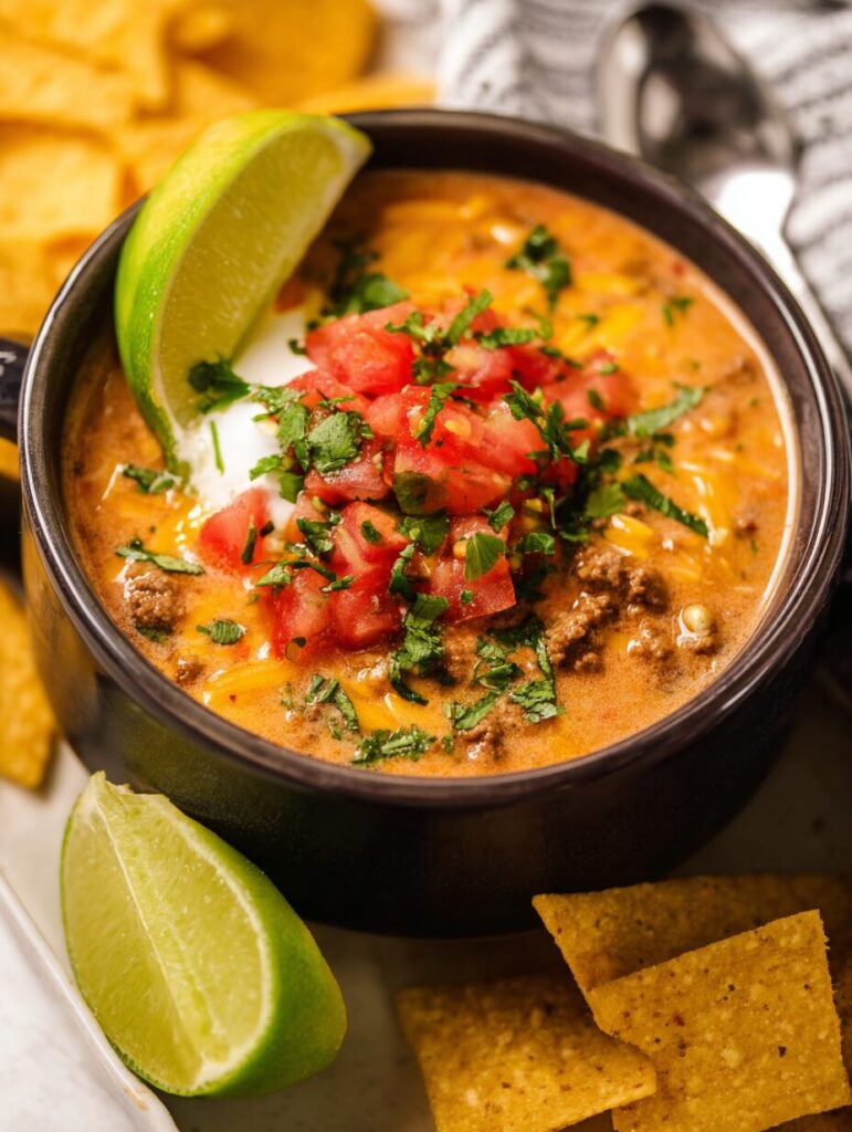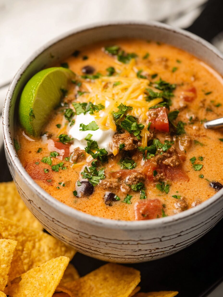 Imagine a bowl filled with tender beef, smoky spices, creamy broth, and hearty beans—all topped with crispy tortilla chips, gooey cheese, and a squeeze of lime. This soup isn’t just a meal; it’s a crowd-pleasing experience.
