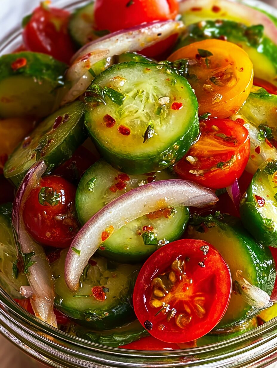 Marinated Cucumbers, Onions, and Tomatoes is more than just a salad—it’s a slice of summertime comfort. Whether you’re reviving memories of grandma’s backyard table or discovering it for the first time, this dish invites you to savor simplicity and fresh flavor. Don’t forget to snap a photo, share it with #HomemadeHaven, and tag us—because great food is even better shared.