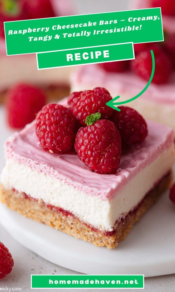 Making Raspberry Cheesecake Bars is more than just baking; it’s about creating sweet memories in the kitchen. The joy of mixing, folding, and baking transforms simple ingredients into a delightful treat that brings smiles to my family’s faces. Each bite is a perfect balance of creamy cheesecake and tart raspberries, making it a dessert that feels special yet is so easy to prepare. Whether you’re celebrating a special occasion or just indulging after a long day, these bars are sure to become a beloved favorite in your home. Trust me, once you try them, you’ll be hooked“`
