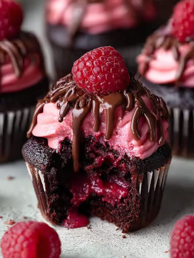 Indulge in these delightful Raspberry Chocolate Lava Cupcakes, featuring a molten chocolate center and topped with raspberry buttercream.