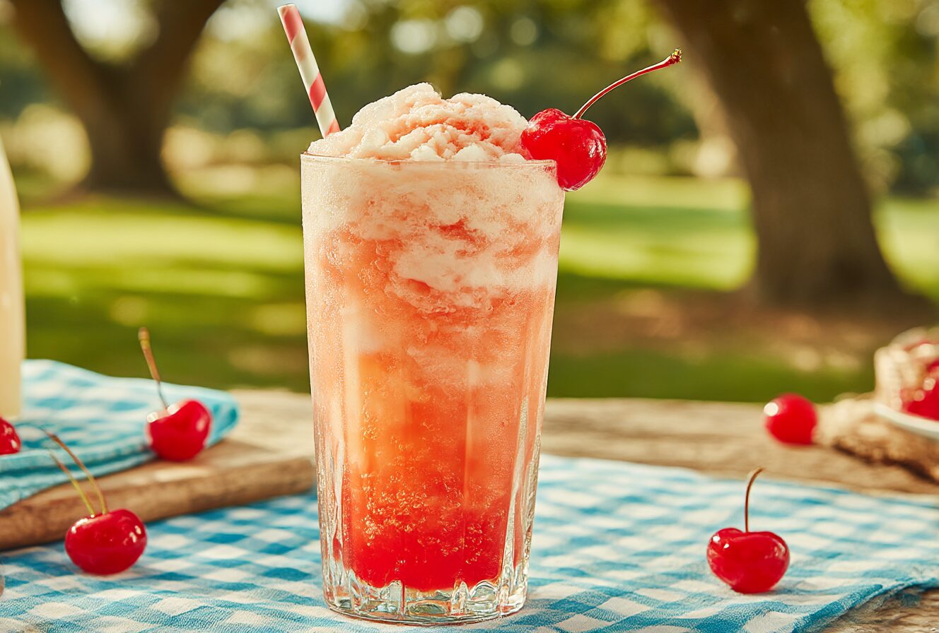 Step 5: Top the float with whipped cream and garnish with a maraschino cherry.