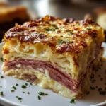 A comforting casserole that transforms the classic Reuben sandwich into a hearty warm meal, perfect for gatherings or family dinners.