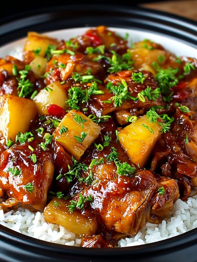 A delicious and easy recipe for Sweet Hawaiian Crockpot Chicken, perfect for a family meal or gathering.
