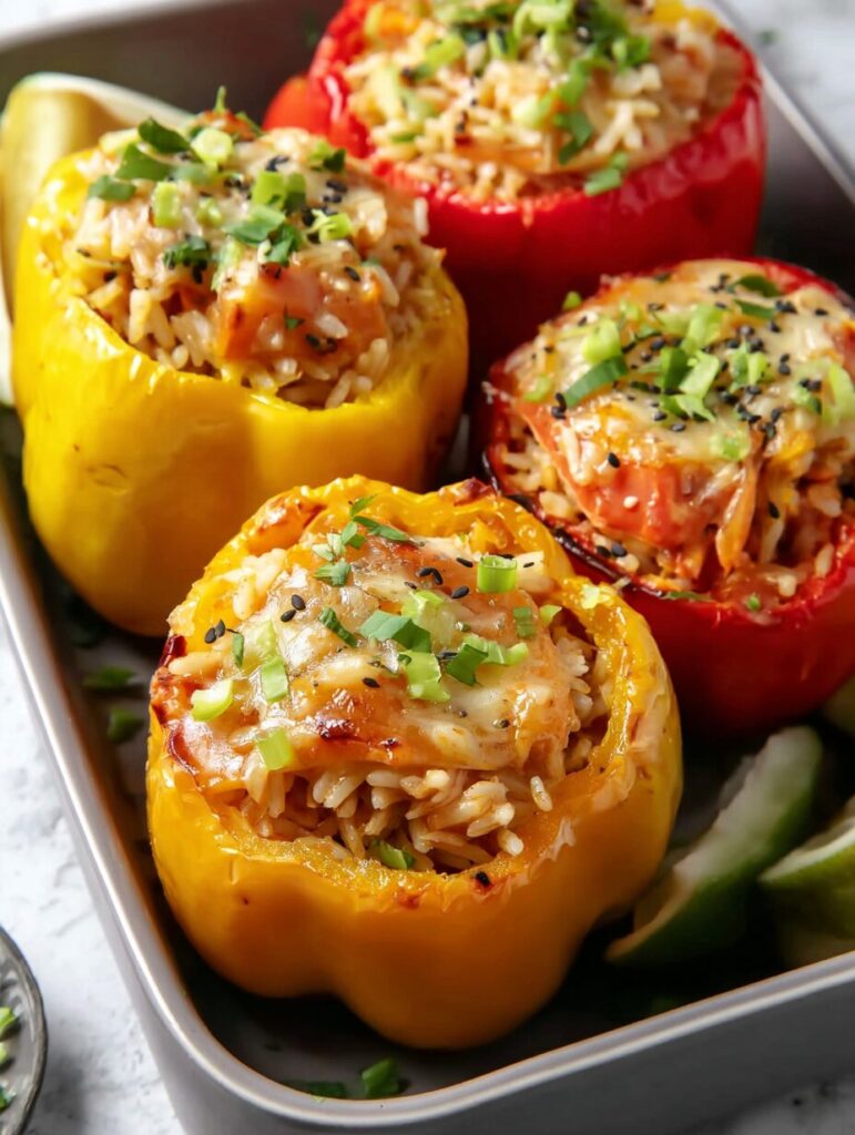 - Cheesy Twist: Sprinkle shredded cheese on top of the stuffed peppers before baking for a gooey finish.